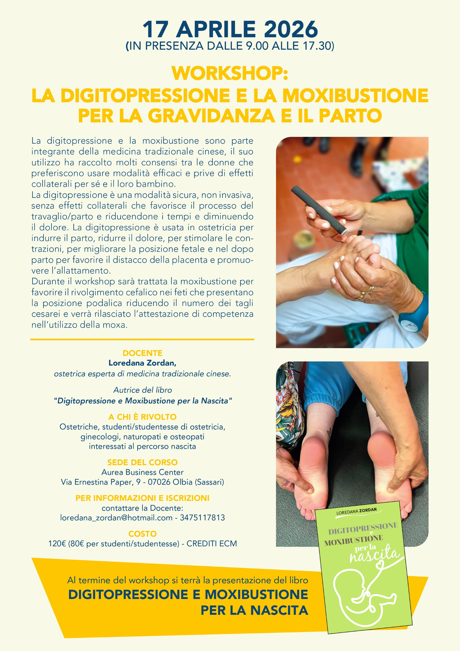 Si comunica che il 17 aprile 2026 si terrà ad Olbia il workshop "La digitopressione e la moxibustione per la nascita". Il workshop rilascerà crediti ECM. I dettagli dell'evento sono contenuti nel v Continua... |